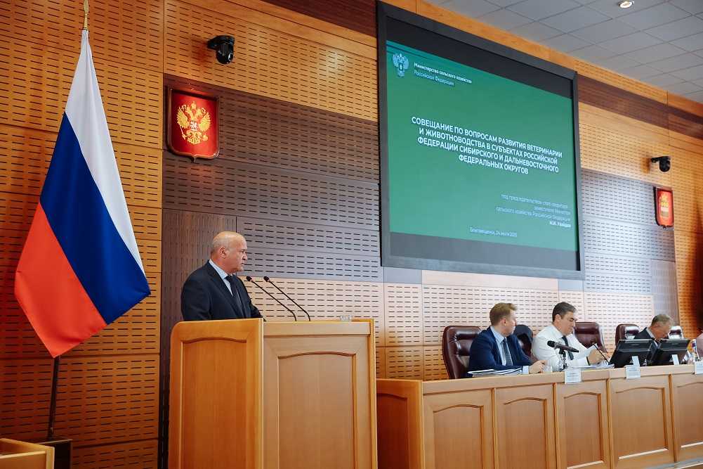 В совещании принял участие губернатор Амурской области, а также представители исполнительных органов власти субъектов, Россельхознадзора, ветеринарных служб, Минобороны России, ФСИН России и Росгвардии, отраслевых образовательных организаций и отечественных производителей лекарственных средств для ветеринарного применения.