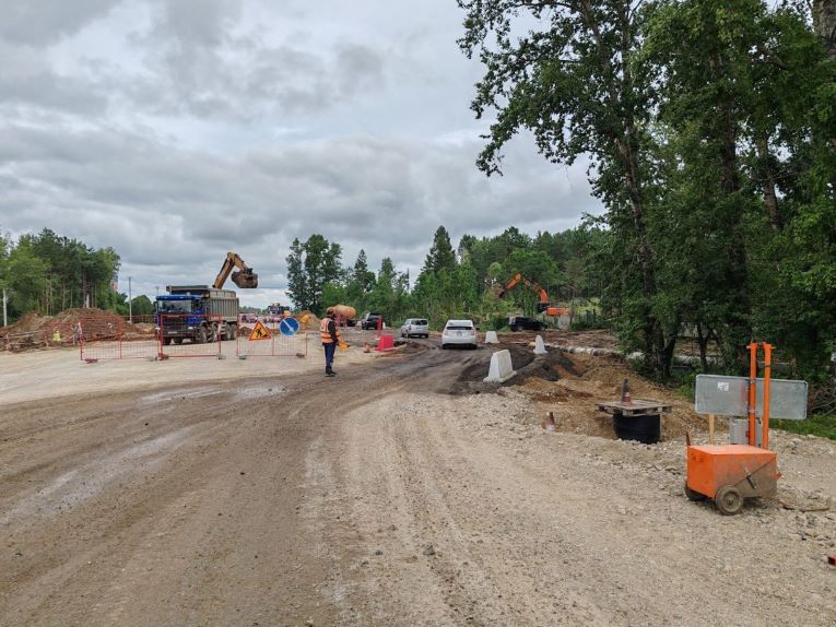 Вдоль реконструируемого участка дороги создали технический проезд. Он обеспечит стабильность трафика на время проведения сложных дорожных работ. Транспорт будет ходить по нему ориентировочно до 13 августа текущего года. Однако специалисты работают в усиленном режиме, благодаря чему автомобилисты могут вернуться на привычный путь и раньше заявленного срока.