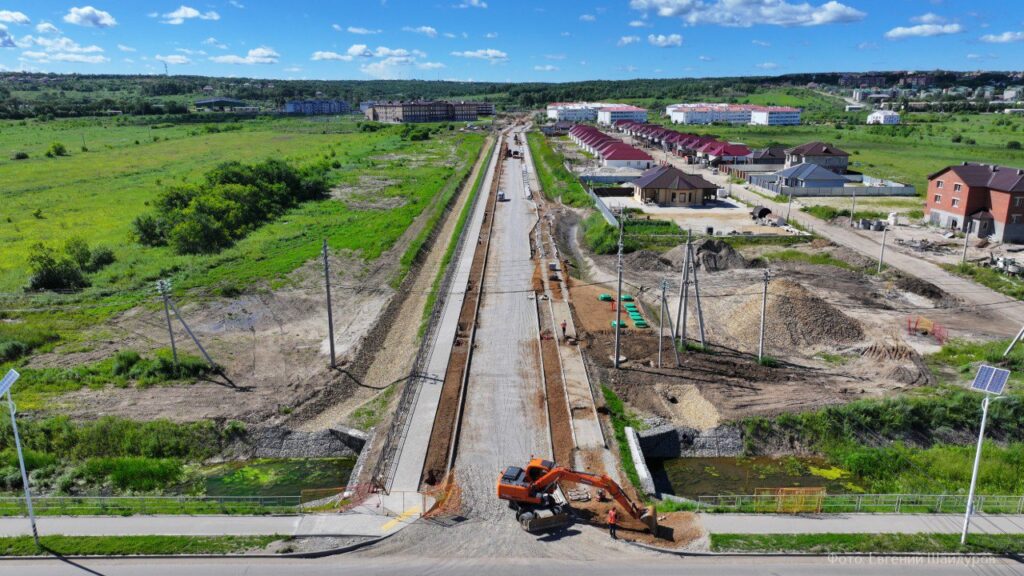 Сейчас на участке специалисты завершают земляные работы, монтаж кабельной линии для электроснабжения опор освещения, устанавливают пешеходное ограждение и готовят пешеходные зоны. Уже подготовлены остановочные площадки, заканчивается изготовление остановочных павильонов.