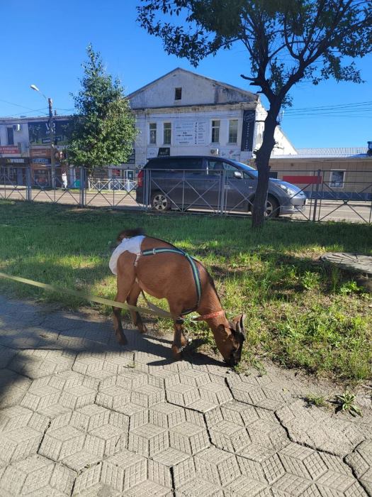 Как уточнили в управлении ветеринарии, эта козочка не живет в Белогорске – она с хозяевами ненадолго приехала в город из Благовещенска.