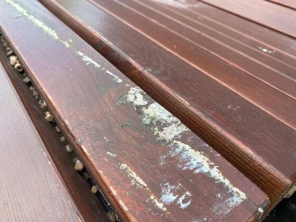 — Лежаки находятся на обслуживании подрядной организации, в ближайшее время с них уберут смолу и покрасят.