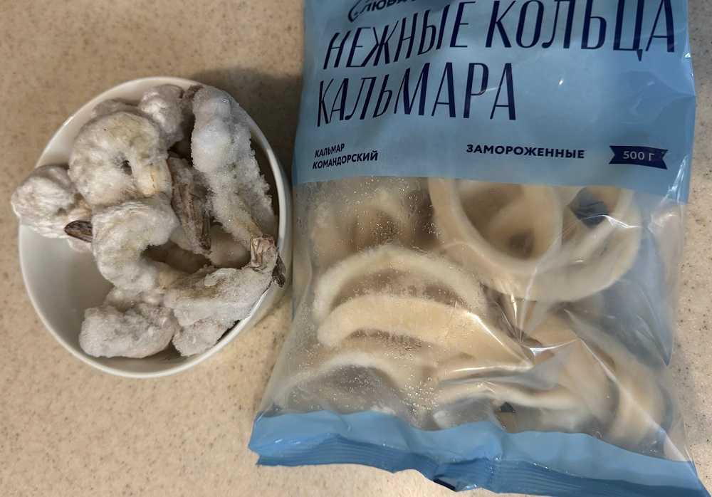 - морепродукты (можно взять готовый мороженый коктейль морской или замешать из любимых морепродуктов собственный) – 400 граммов,