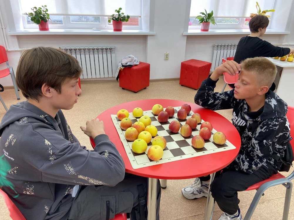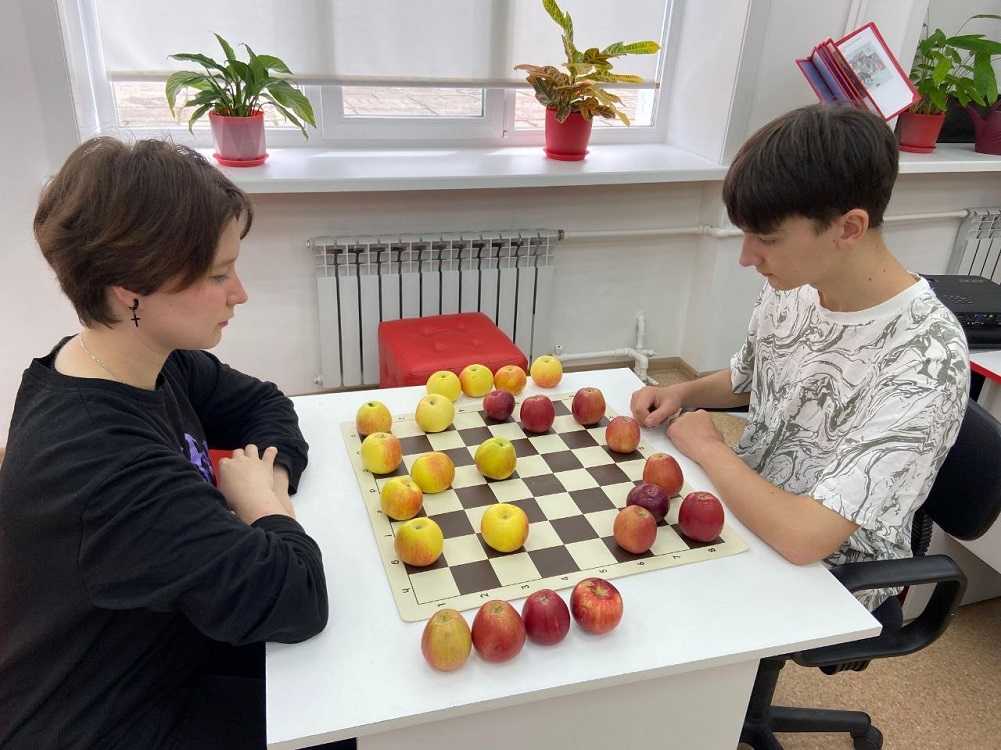 В съедобных партиях приняли участие более 20-ти человек: спортсмены играли в шашки яблоками.