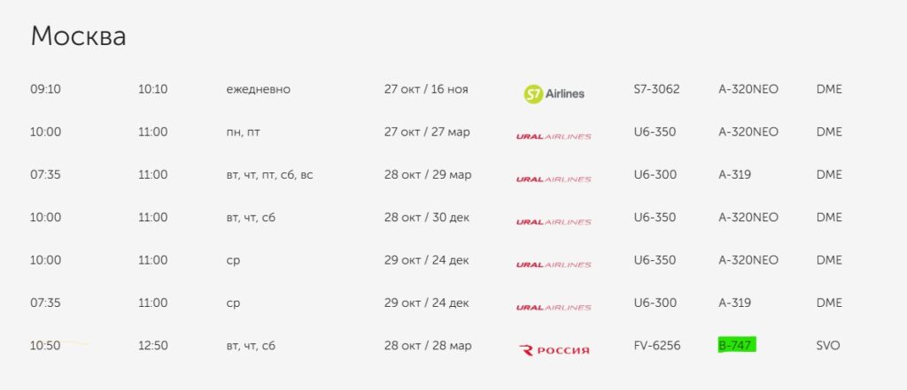 По данным паблика, рейсы по указанному маршруту на Boeing будет выполнять авиакомпания «Россия».