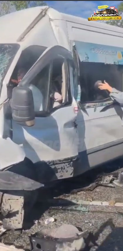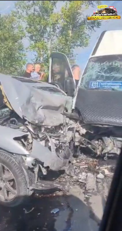 «Полицейские устанавливают обстоятельства дорожно-транспортного происшествия, произошедшего сегодня на автодороге «Благовещенск-Свободный». По предварительной информации, произошло столкновение автомобиля Toyota Crown и маршрутного автобуса Iveco. В автоаварии имеются пострадавшие. На месте работают сотрудники Госавтоинспекции, скорой медицинской помощи и спасательные службы».