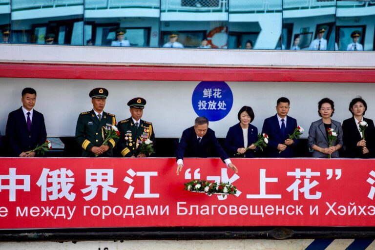 Благовещенцы и китайцы вместе опустили цветы на воды Амура