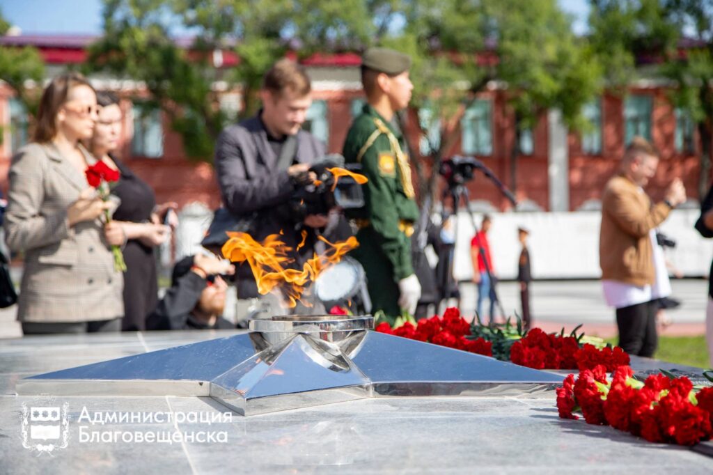 Мероприятия начались с торжественного митинга на площади Победы, в котором приняли участие официальные лица, ветераны, представители общественных организаций, жители и гости города. После официальной части и минуты молчания присутствующие возложили цветы к подножию мемориала воинам-амурцам.