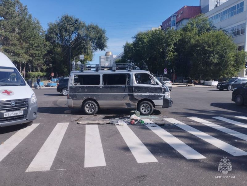 Судя по кадрам, опубликованным в телеграм-канале «Дорожный Благовещенск», авария произошла в нескольких метрах от управления МВД России по Амурской области. Удар был такой силы, что микроавтобус перевернулся.