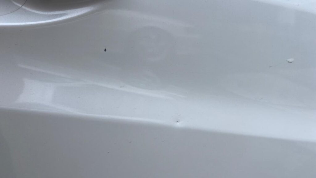 — 21 августа этого года в 10:50 я припарковала своё авто возле Центрального универмага в переулке Волошина. Зашла в магазин буквально на 5 минут, а когда вышла, обнаружила, что весь правый борт автомобиля испачкан скошенной травой – рядом поработали газонокосилкой. А в тот момент, когда я выходила из машины, траву не косили и предупреждающих о таких работах объявлений нигде не было. Кроме травы на двух правых дверях и крыле появились многочисленные сколы металла (более десятка) и вмятина: очевидно, что из-под косилки летели камни, которые и повредили покрытие. Стоит отметить, что автомобиль новый, в идеальном состоянии, с оценкой в 5 баллов, три месяца назад был куплен в Японии.