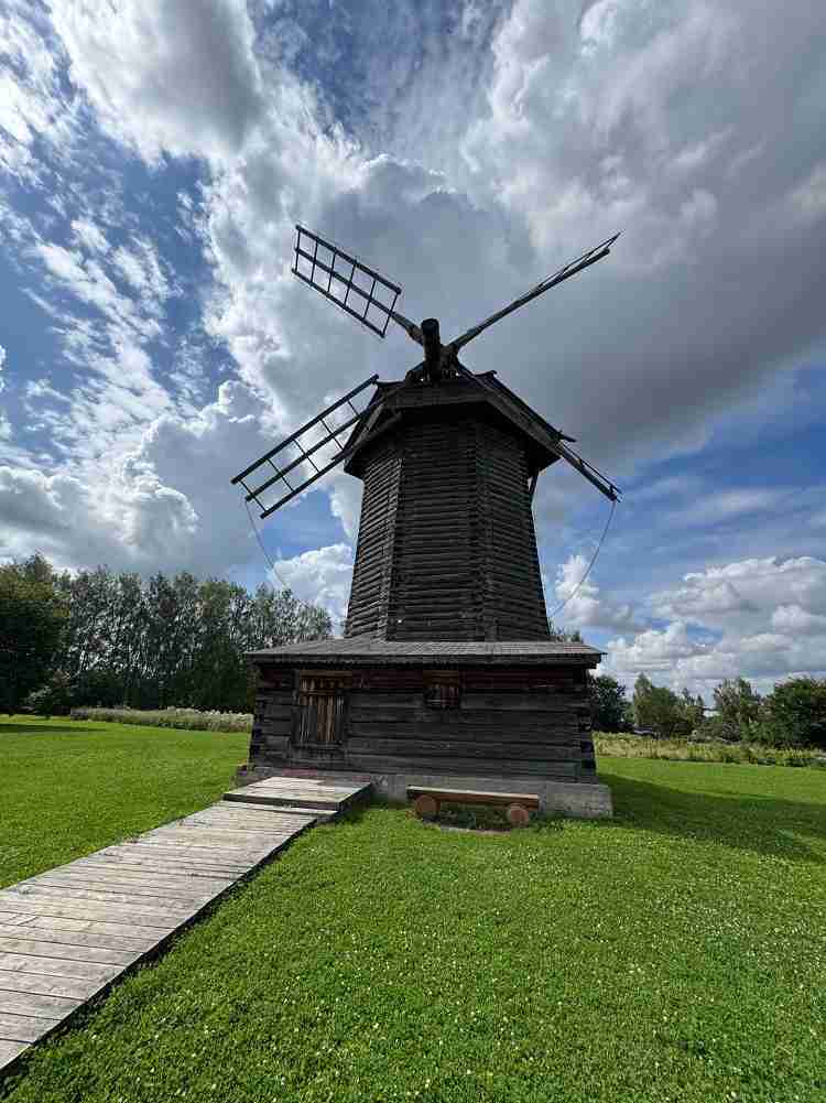 С погодой повезло, потому гулять по этому музею было одно удовольствие. Здесь можно заглянуть в избу простого крестьянина, зайти в «гости» к зажиточному, посетить Никольский храм из села Глотово, сооруженный в середине XVIII века, и побродить вокруг старинных мельниц. В этом месте время будто остановилось, и даже не верится, что за деревянным забором XXI век.