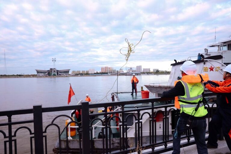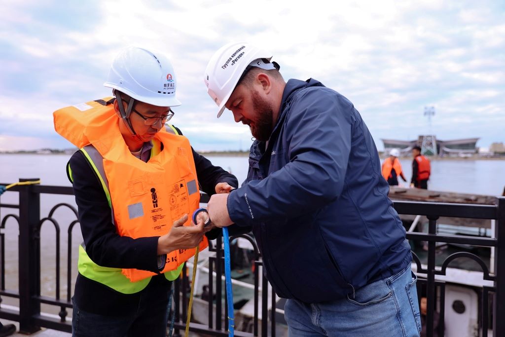 Знаковое событие произошло утром 10 сентября. Сначала один конец каната закрепили на опоре в Хэйхэ, потом другой его конец привезли в Россию на специальном судне, которое сопровождали пограничники обеих стран.