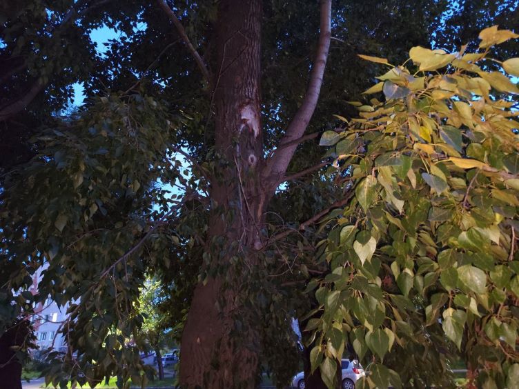 Так, в районе дома № 25 на улице Амурской (между Лазо и Партизанской) шквалистый ветер обломал ветку тополя. Она грустно повисла вдоль ствола, впрочем, не падая на землю – зацепилась за другую, целую ветвь.