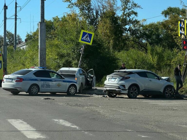 Иномарки столкнулись на пересечении улиц Загородной и Октябрьской. Судя по фотографии, присланной очевидцами, от удара оба автомобиля отлетели в стороны. Одна машина врезалась в дорожный знак, другая – в столб светофора.