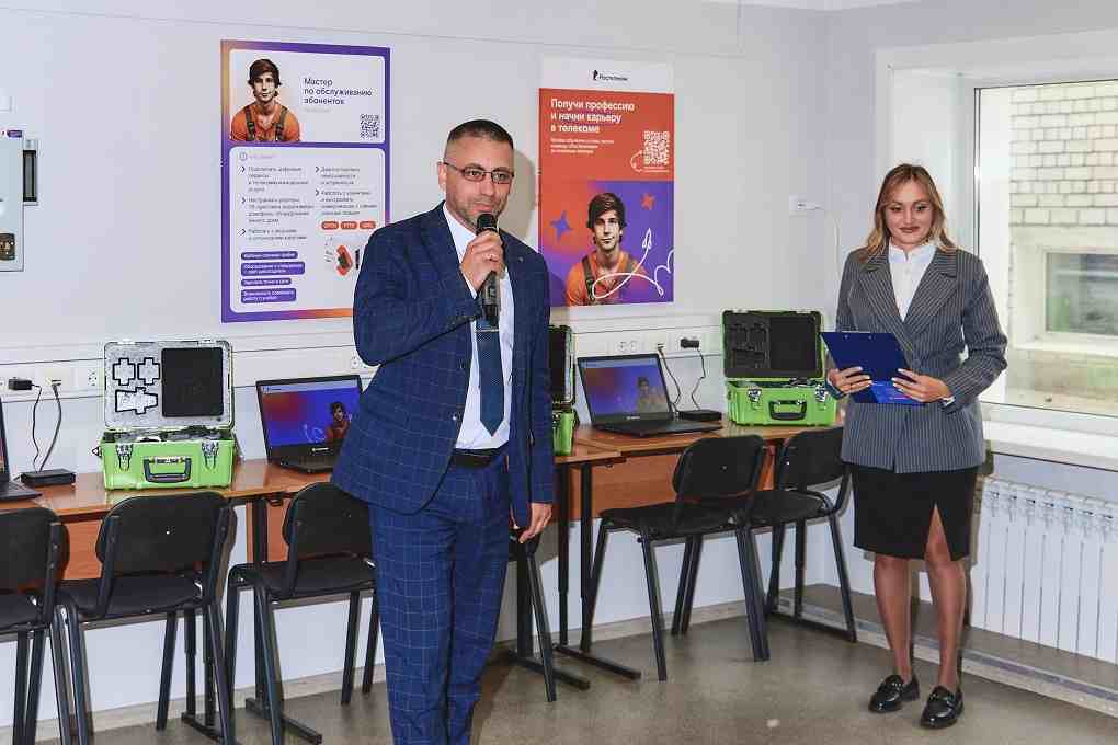 «Это не просто класс, а цифровая лаборатория. Здесь проложены оптоволоконные линии связи, которые мы чаще всего используем для подключения зданий к высокоскоростному интернету. Установлены коммутаторы, камеры видеонаблюдения, ТВ-приставки, Wi-Fi роутеры, умные колонки и всё необходимое для работы сервиса “Умный домофон”. На каждом рабочем месте есть ноутбук с доступом в Сеть. Также в классе есть аппараты для сварки оптоволокна. Мы очень серьезно подошли к обучению, потому что нам нужны настоящие профессионалы, которые в будущем придут к нам работать».
