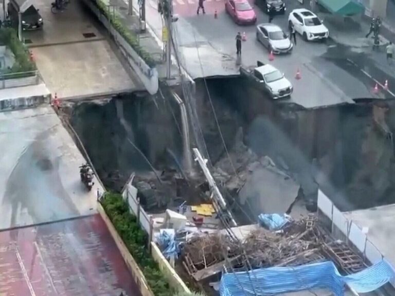 По данным издания, провалился участок улицы Самсен перед больницей Ваджира в Бангкоке. В результате образовалась большая яма около 50 метров глубиной и 30 метров в ширину. Отмечается, что дорога обвалилась над станцией метро, частично разрушив линии электропередачи.