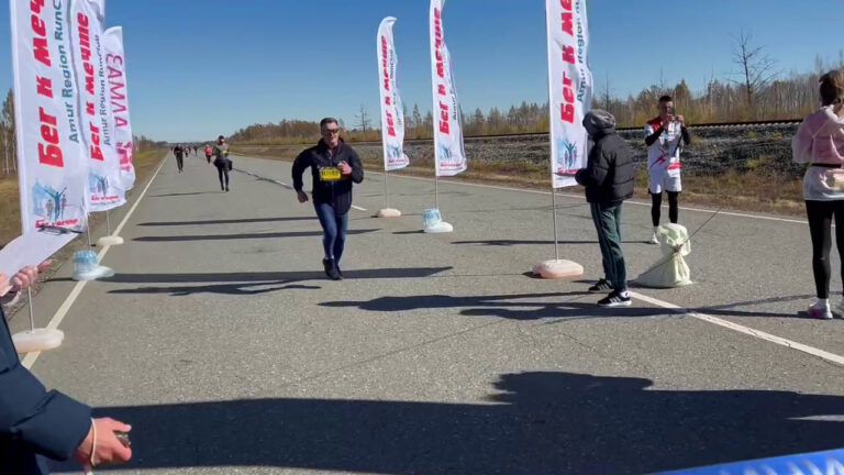 От самого космодрома на трассу вышли сотрудники Дирекции космодрома Восточный Владимир Кучеров и Нина Бакова. Они покорили дистанции в 10 и 21,1 километр. А глава Циолковского Виталий Брижатый даже снял видео во время своего забега.