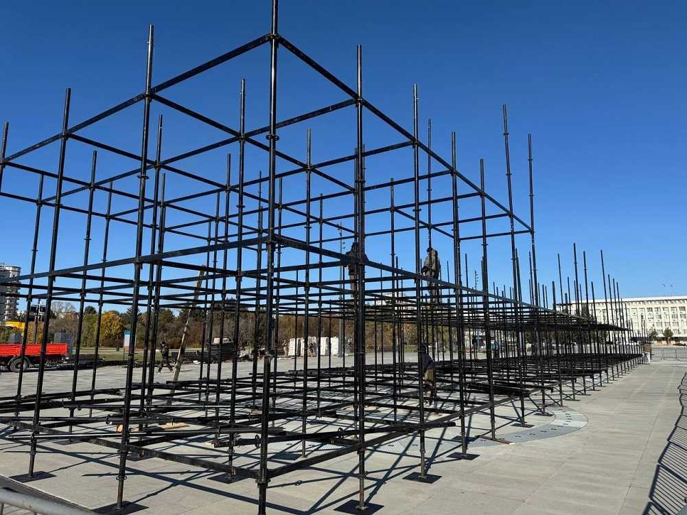 На площади Ленина в Благовещенске монтируют 150-метровый зимний аттракцион