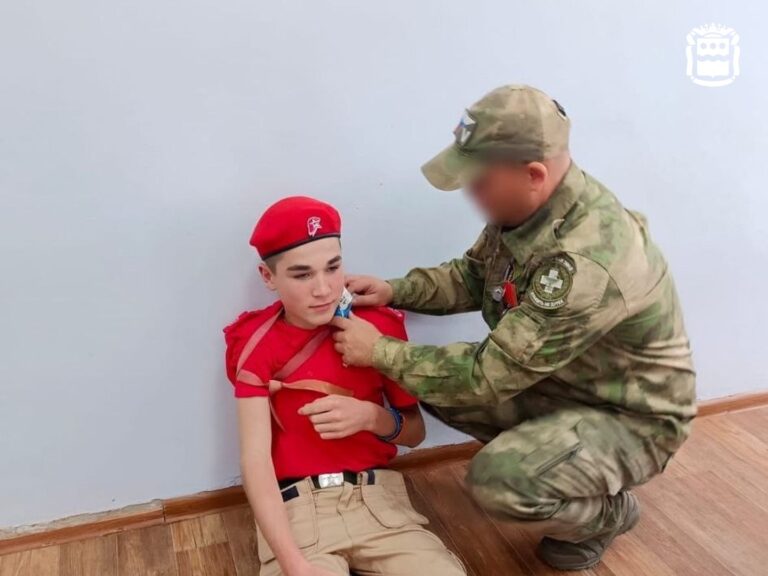 Боец рассказал ребятам о важности оказания первой помощи в условиях, приближенных к военным, и поделился методами быстрой и эффективной помощи раненым.