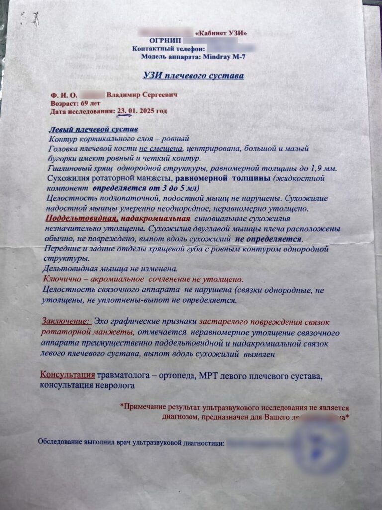 В конце января дочь отвезла его в больницу в посёлке Новобурейский к ортопеду-травматологу. Врач диагностировал ушибы плечевого пояса, плечевого и тазобедренного суставов, коксалгию слева, а также предположил повреждение ротаторов левого плеча. Позже пенсионер прошёл УЗИ, КТ и курс лечения.