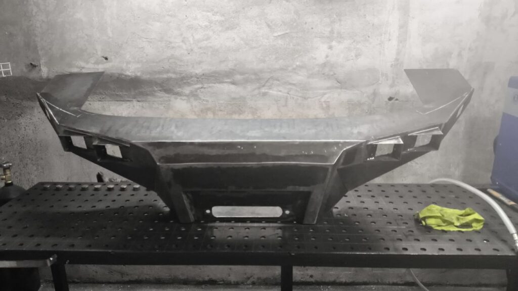 — Первым был автомобиль Toyota Land Cruiser 80 – машина моего друга. На этом авто был установлен силовой бампер (элемент, заменяющий собой обычный пластиковый бампер; используется как платформа для допоборудования, позволяет защитить кузов от ударов, улучшает проходимость. – Прим. ред.). Тот бампер был не очень хорош, так скажем: загнут, да и изначально сделан был как-то некрасиво. Вот с него я и начал. Тем более силовые бампера мне нравились, ведь они очень удобны, практичны, с лебёдкой, установленной на таком бампере, можно спокойно ездить на охоту: если где-то авто застрянет, она пригодится, чтобы вытащить машину. И вот на Toyota Land Cruiser 80 я сделал другой силовой бампер.
