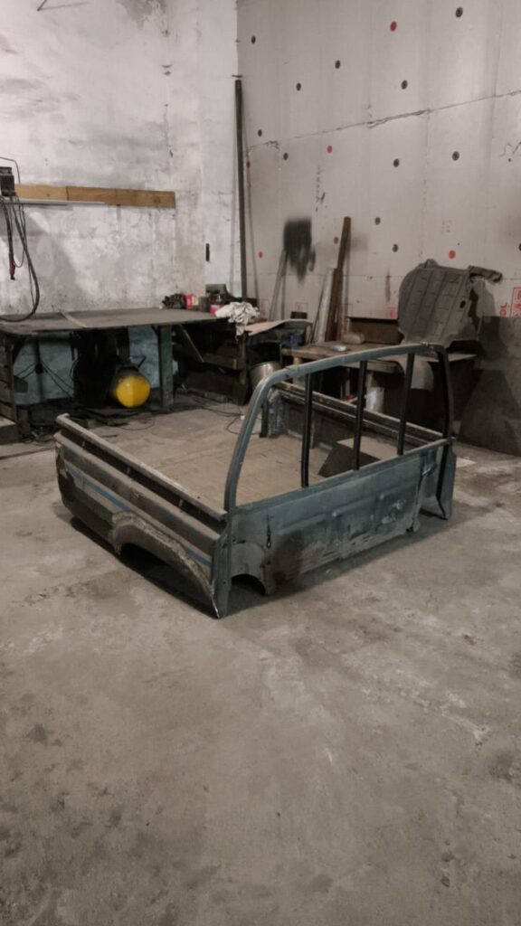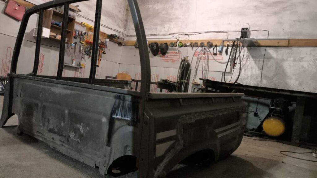 Ну а сейчас у меня в работе пикап – Toyota Hilux, и пока что он выглядит ужасно. Я полностью отреставрировал на нём раму – она была погнута. Теперь на восстановлении находится кузов, который, к слову, уже почти доделан: пока что ведутся сварочные, рихтовочные работы, идёт замена подкрылков, крыльев и тому подобное. Фактически же пикап я усовершенствую: у него будет другой, маленький, кузов. Но при этом все подобные модификации никогда не выходят за рамки закона – всё будет выполнено как положено. А впереди ещё ремонт передней части автомобиля, но это уже следующий проект, тоже, кстати, с подачи знакомого.