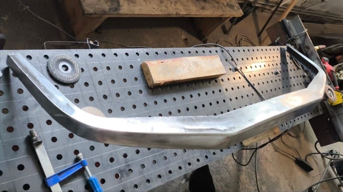 Вообще же проект у меня есть – один-единственный полный чертёж всего бампера, но он мне не требуется – у меня всё в голове. Я беру кусок железа, прикладываю к машине и начинаю пилить, резать, варить, что-то создавать, одна деталь к другой клеится. Так оно и выходит у меня. Бывает, требуются изменения: поставлю деталь, соберу всё, мне что-то не понравится, возьму и просто переделаю, поэтому я предварительно никаких проектов не создаю. Единственное, могу размеры записать, и всё, да и те цифры держу в голове. Работаю я один всегда: люблю, когда кругом тишина и можно всецело сконцентрироваться на своём занятии.