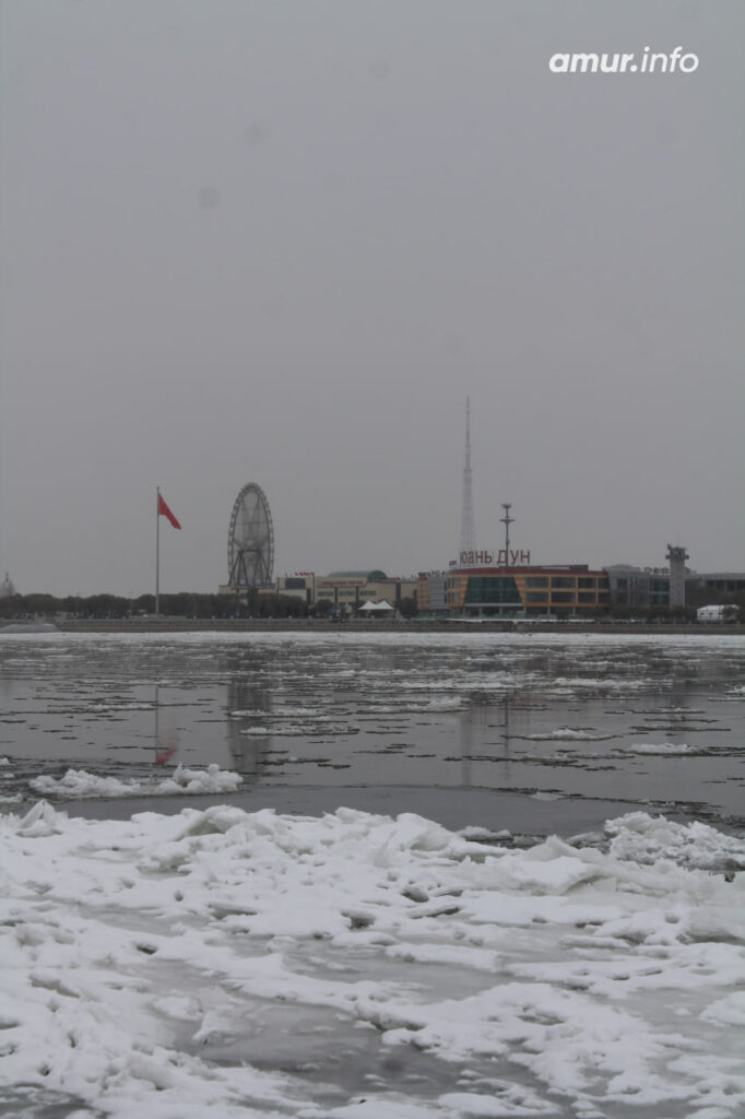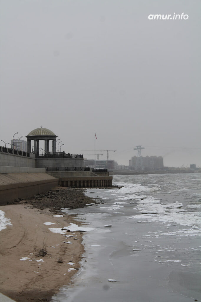 На пустынной набережной слышно только шуршание льдин друг о друга и далёкий гул «пум», курсирующих между Благовещенском и Хэйхэ.