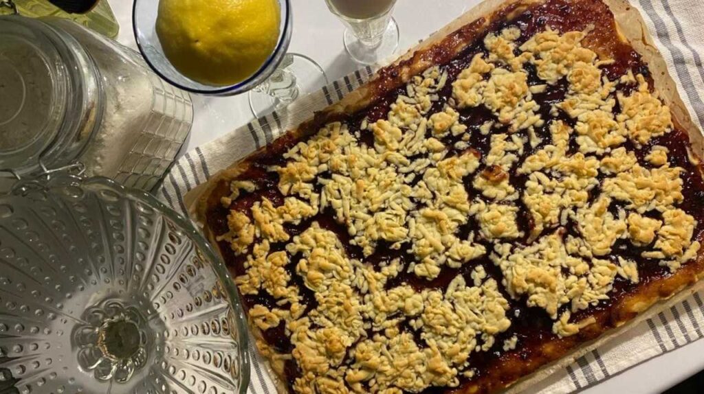 Достаем из морозилки оставшуюся треть теста и трем его на терке. Выкладываем тертое тесто равномерно поверх варенья. Отправляем противень в разогретую до 180 градусов духовку на 25-30 минут. Готовый пирог достаем из духовки и сразу разрезаем его на небольшие прямоугольники: песочное печенье с крошкой готово. Если дать ему полежать, а не съесть сразу, то оно немного затвердеет. Но вкус от этого менее аппетитным не будет.