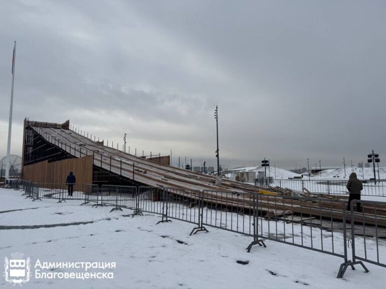 На центральной площади Благовещенска завершают монтаж одной из крупнейших тюбинговых горок на Дальнем Востоке. Её высота составит 14 метров, а длина спуска – до 150 метров, рассказали в мэрии города.