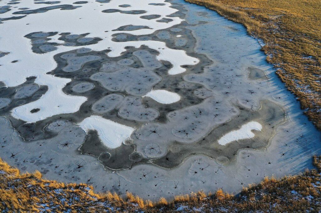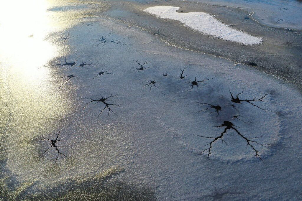 В экспериментах исследователи смогли воспроизвести этот эффект, просто поливая снег на льду водой – узоры получались точно такие же, как в природе.