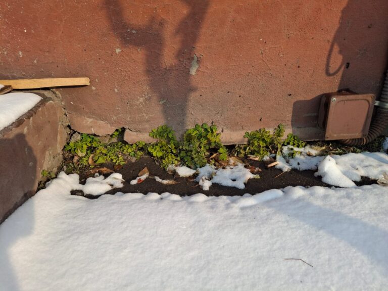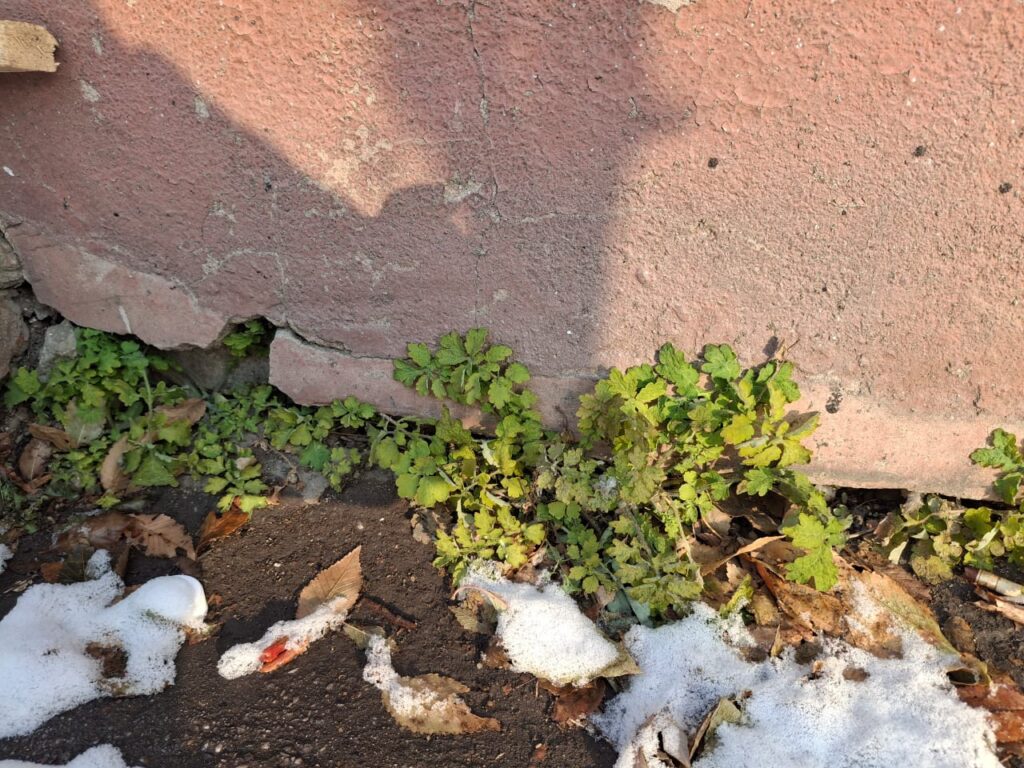 Павел также прислал фотографии, сделанные возле одной из благовещенских многоэтажек, расположенной на пересечении улиц Амурская и Кузнечная. Растения продолжают жить вдоль фундамента дома, несмотря на снег вокруг.