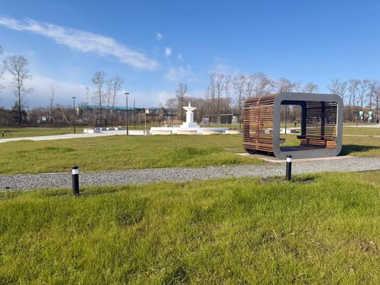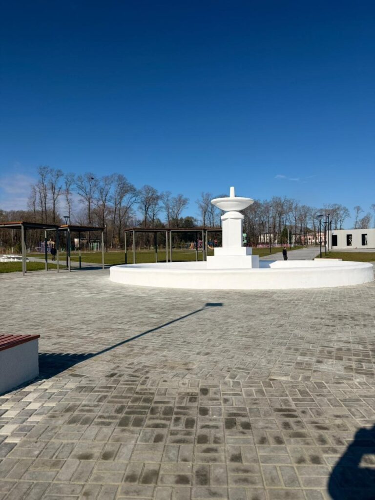 После обновления здесь появятся амфитеатр для концертов, большая детская площадка, зоны воркаута, танцевальная площадка, скейтпарк и шахматная зона. В центре парка установят световой фонтан. Сейчас объект готов на 97 %, завершить работы планируют до конца года.