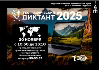 В Амурском областном краеведческом музее 30 ноября пройдёт географический диктант. Амурчане смогут проверить свои знания по географии, ответив на вопросы разного уровня сложности.