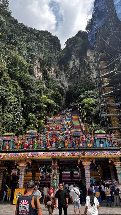 Также мы посетили пещеры Бату. Обидно было, что местная огромная-преогромная статуя Будды в этот момент находилась на реставрации, была вся в строительных лесах. Но, что забавно, по всем этим лесам скачут обезьяны. У обезьян там вообще всюду свободный доступ, и они бегают просто сами по себе. То есть если ты вовремя не убрал там, скажем, цепочку или ещё что-то, если с тебя украшение сорвали, значит, сам виноват – ты знал, куда идёшь.