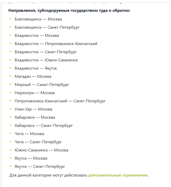Субсидированные билеты на 2026 год уже есть в продаже. Они будут доступны на рейсы из городов Дальнего Востока и Сибири таких как: Владивосток, Хабаровск, Якутск, Петропавловск-Камчатский, Благовещенск и другие. Из этих городов можно будет улететь в Москву, Санкт-Петербург, Сочи, Екатеринбург, Новосибирск и Минеральные Воды. Также в программу субсидированных перевозок вошли перелёты из Калининграда в столицу.