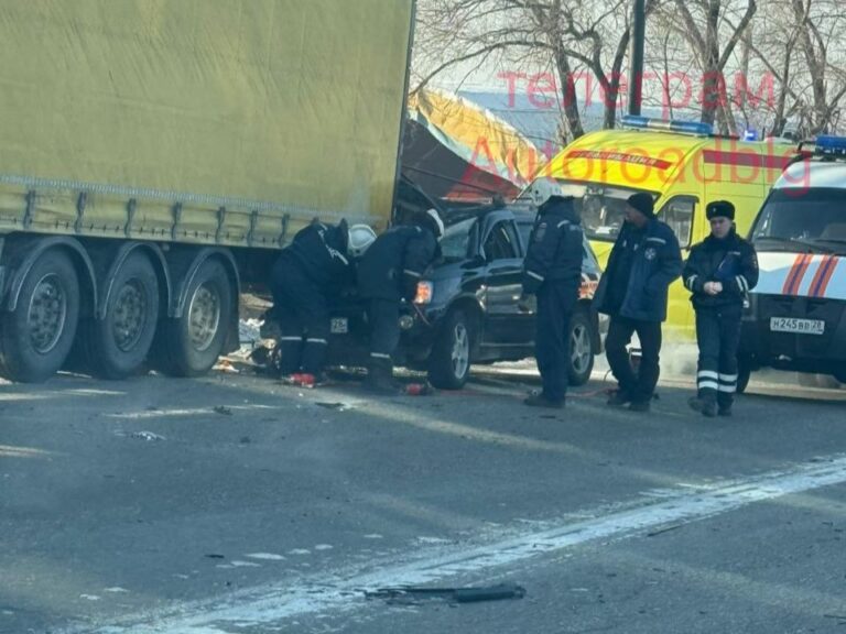 Работают спасатели и реанимация: в Благовещенске внедорожник влетел в фуру (обновлено)