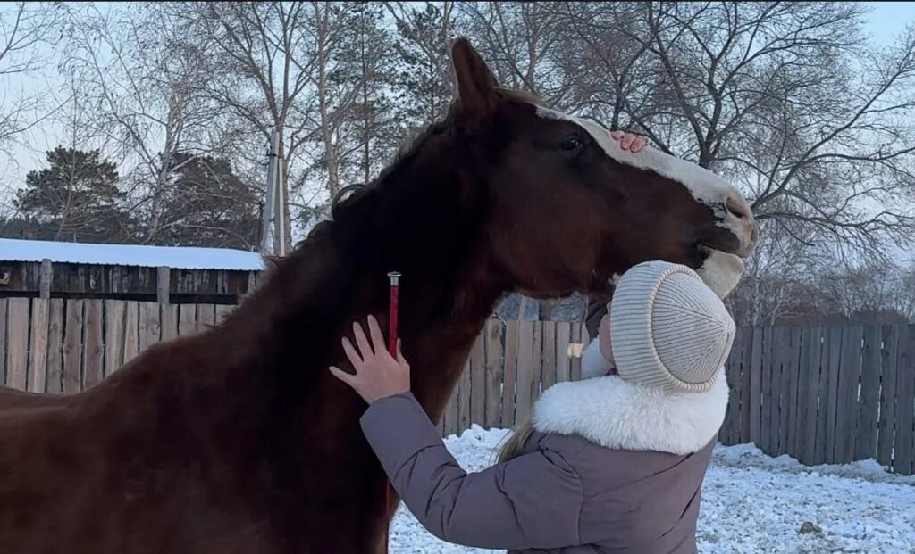 Каждую встречу юная амурчанка посвящает занятиям. Она учит Забаву новым трюкам, в том числе и улыбаться по команде, а кобыла в ответ старается и быстро запоминает команды.