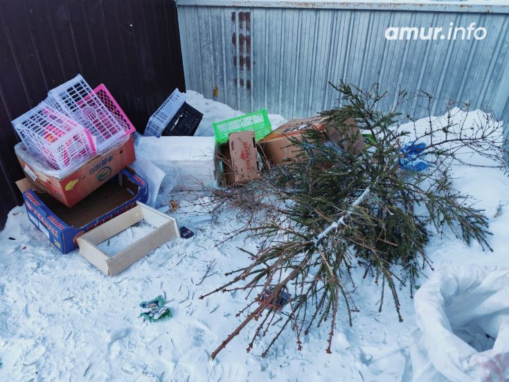 Кто-то несёт дерево целиком, по пути засыпая засохшей и оттого легко отделяющейся от ствола хвоей сначала квартиру, потом подъезд, ну, а то, что осталось, формирует длинную зелёную дорожку от подъезда до контейнера. Выброшенные целые ёлки неделями лежат на контейнерной площадке, ожидая, пока дворник из управляющей компании их измельчит и отправит в контейнер. Это, конечно, неправильно и в плане необходимости уборки мусора от такого прощания, и занятия полезного времени дворника. Кто-то, чтобы избежать осыпания хвои, выбрасывает ёлку с балкона. Но это чревато зацепом её за бельевые верёвки и провода внизу, и, опять же, работникам коммунальных служб всё равно придётся тратить на неё время.