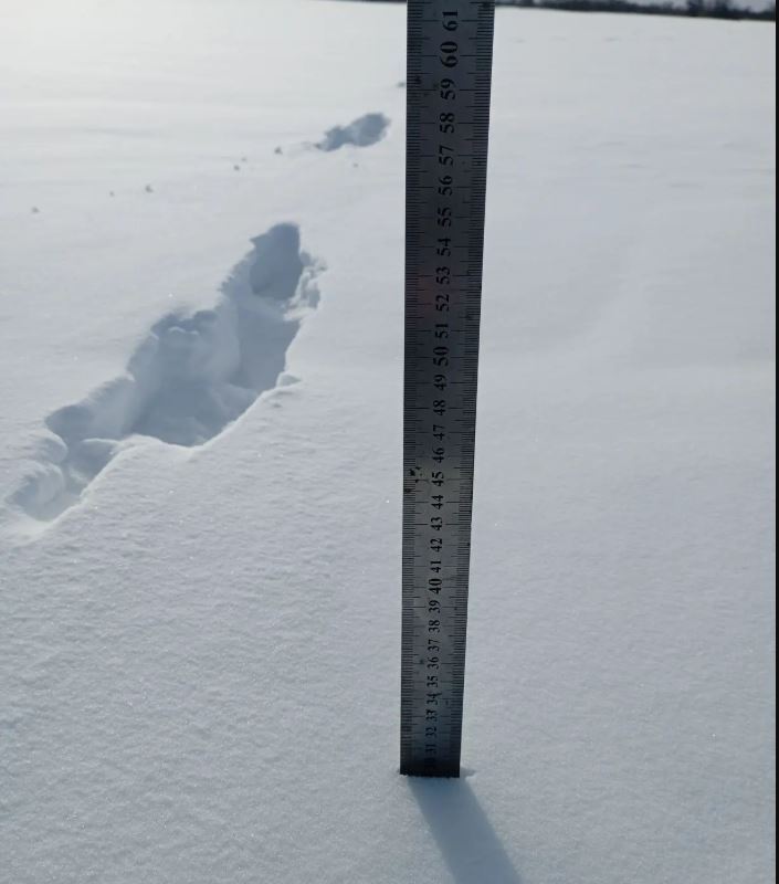 Замеряли снег на территории заказников. Оказалось, что на юге области сугробы не выше 35 сантиметров, а вот на северных территориях глубина снежного покрова доходит до 50 сантиметров.