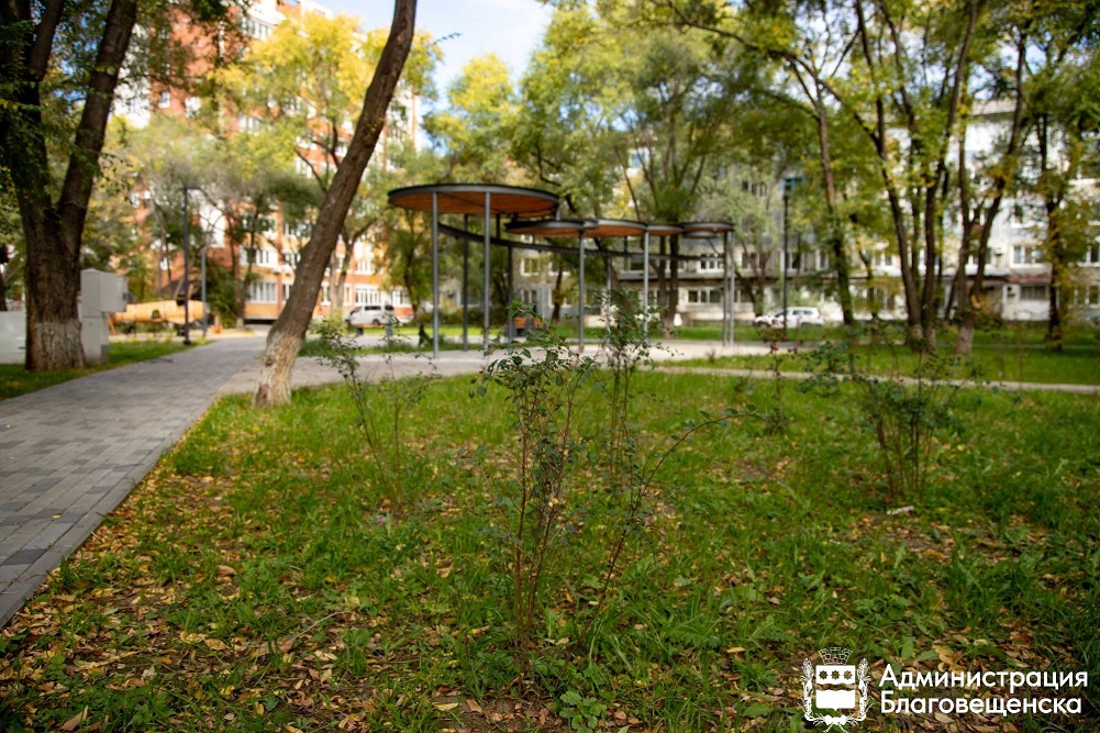 Состав растений подбирали специально под местный климат совместно с ДальГАУ и Центром развития территорий. Для высадки выбрали пять пород деревьев и 21 вид кустарников. Среди них маньчжурские ясень и орех, пузыреплодник Диабло, блестящий кизильник и амурский барбарис.