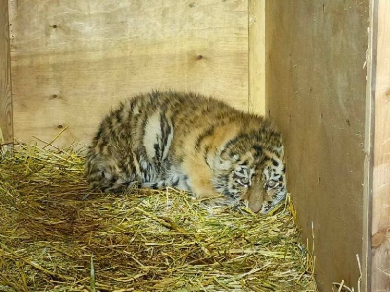 Найдёныша поместили в вольер в службе по охране объектов животного мира и особо охраняемых природных территорий Хабаровского края. Оказалось, что это самец: специалисты между собой прозвали его Тимошей. Из-за изрядной слабости ему требовался постоянный уход, поэтому его разместили отдельно от другой дикой сироты – маленькой тигрицы, которую нашли в Хабаровском крае в этом январе. Её ветеринары между собой называли Викой. Хвостатая малышка к тому моменту уже успела набраться сил и вела себя активно, даже характер показывала.