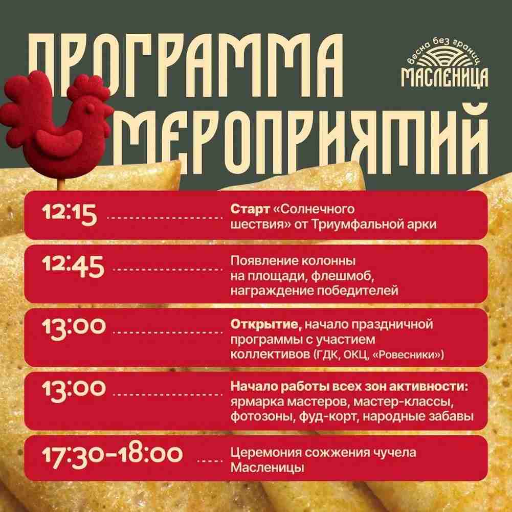 Организаторы отметили, что главной валютой праздника станут «солнышки». Заработать их можно не только победой, но и просто участием в конкурсах. «Солнышки» будут выдавать аниматоры. Накопить их смогут и те, кто сделает снимок на масленичной фотозоне или станет участником мастер-классов. Главное – быть не просто зрителем.