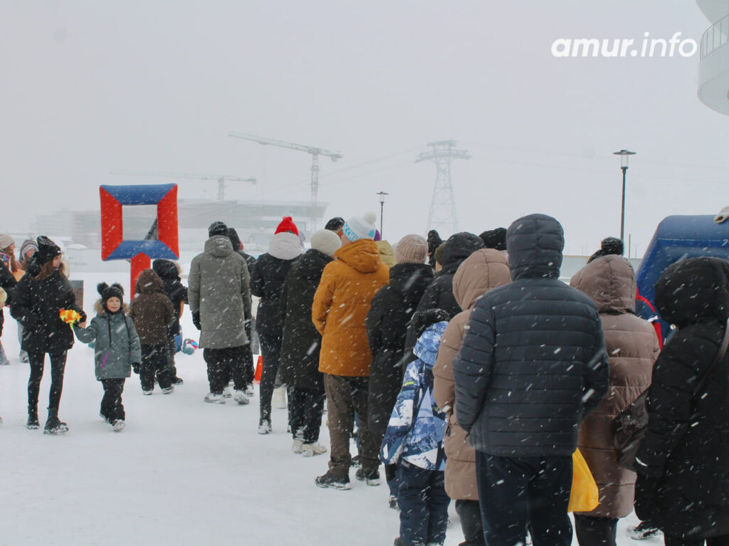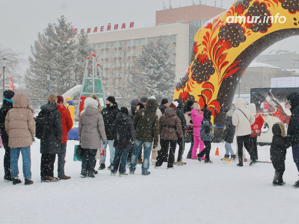 Зимняя достопримечательность Благовещенска оказалась в самом центре события и, безусловно, не осталась без внимания благовещенцев. Прокатиться на тюбинговой горке хотели многие. Естественно, очередь всё ещё никого не пугала.