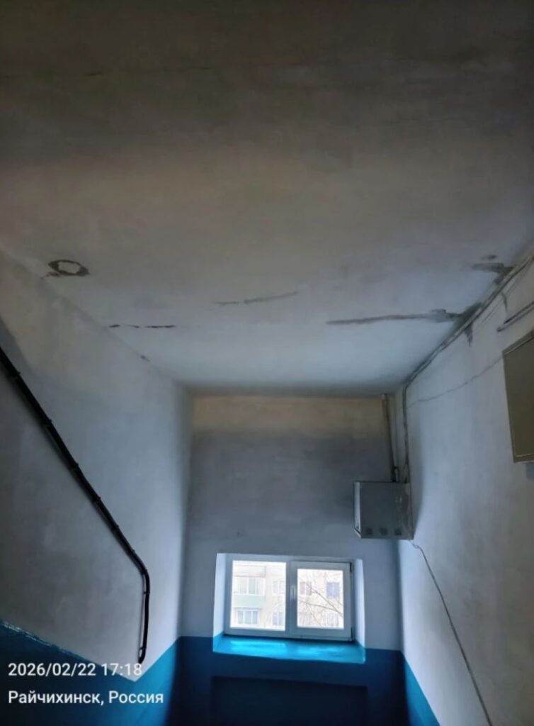 Ольга объяснила: работы на крыше завершились летом 2025 года, и до февраля 2026 года их пятиэтажка с более чем полувековой историей, в общем-то, стойко держалась против непогоды. А потом весна в их квартиры пришла, во-первых, куда раньше, чем в город вообще, во-вторых, по традиции, принесла с собой ручейки, а в третьих, её и не звали в гости. В подтверждение своих слов горожанка поделилась фото- и видеосвидетельствами нежданной внутридомовой капели. Водичке, кстати, и квартир было мало – она в подъезд вышла, судя по потёкам на потолке.