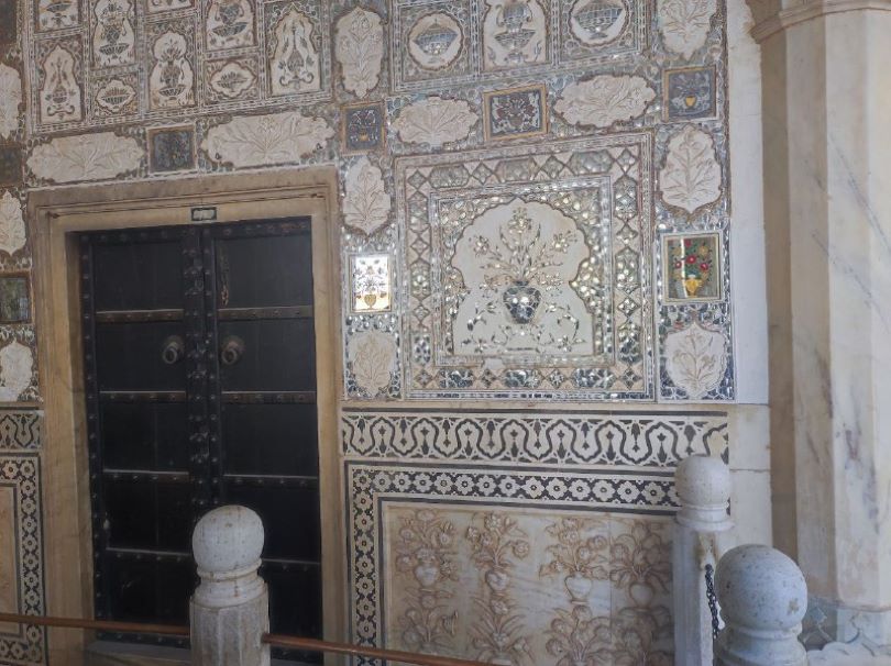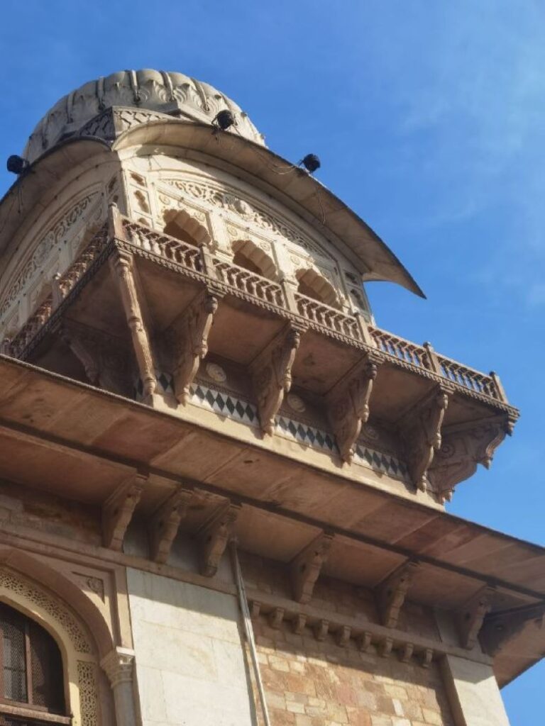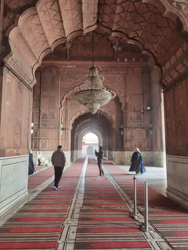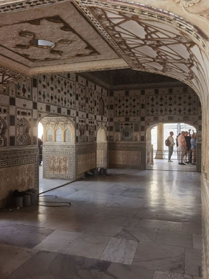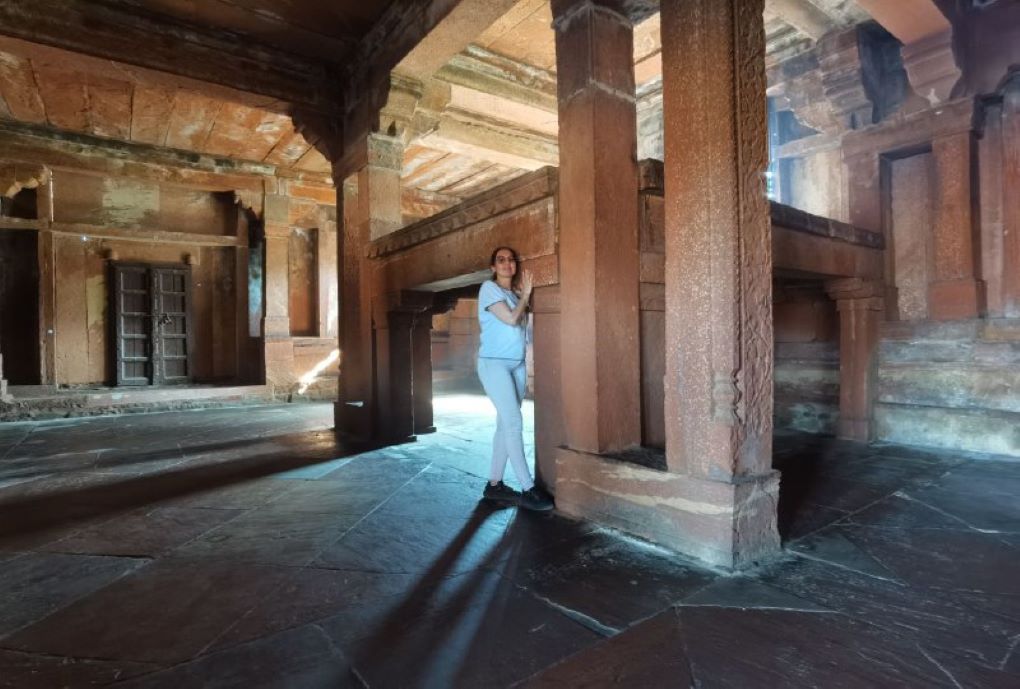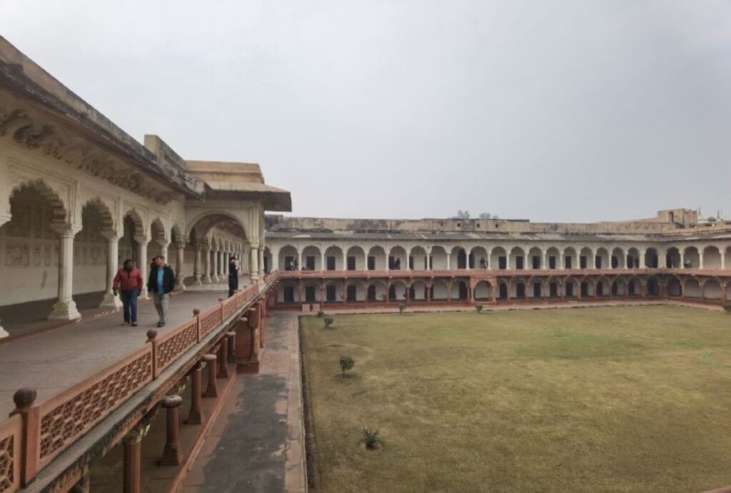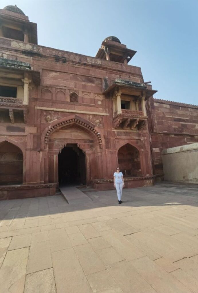Повторюсь, мы побывали в трёх городах: Агре, Дели и Джайпуре. В Агре мы посмотрели дворцы: все они построены по одному принципу – там есть внутренние дворики, а вокруг них расположены небольшие такие помещения, комнаты, которые закрывались коврами. В некоторых помещениях били фонтанчики, чтобы хоть как-то охлаждать их в жару. В оформлении этих дворцов соединяются мусульманские и индуистские мотивы, поскольку это архитектура империи Великих Моголов (государства, которое существовало на территории современной Индии, Пакистана, Бангладеш и юго-восточного Афганистана. – Прим. ред.).