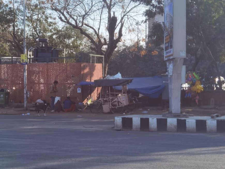 И, в принципе, в городах Индии частая картина – бездомные. Чаще всего это приезжие из более бедных штатов и деревень. Живут они под небольшими самодельными навесами на улице, тут же на тротуарах жгут костры из разного мусора и готовят себе еду.