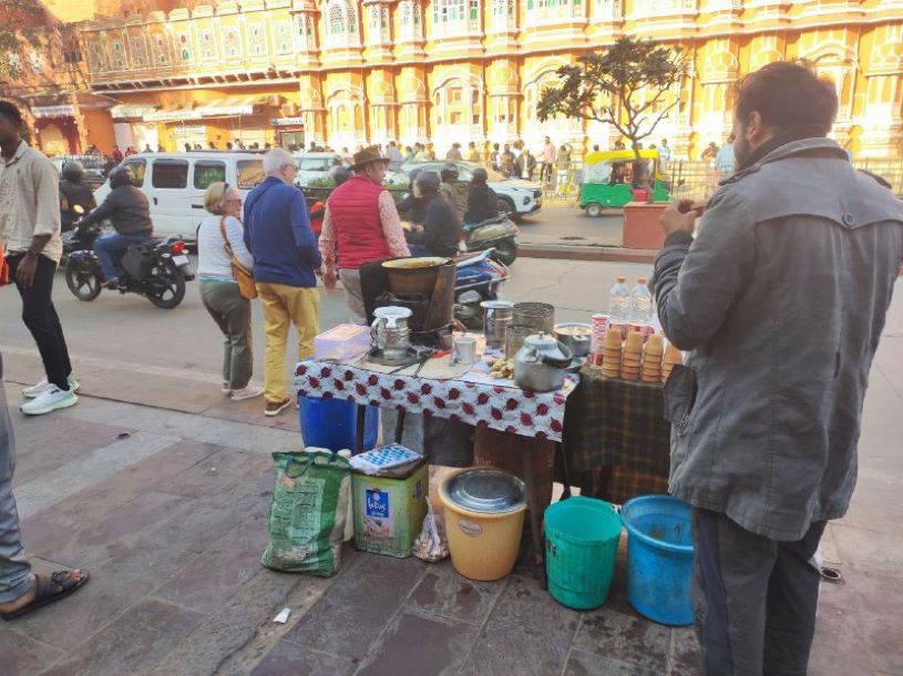 А на улице там везде продают из тоненького тыквенного теста полые шарики. Я такие попробовала в гостинице, потому что на улице полная антисанитария. Повар в таком шарике проламывает небольшое отверстие, кладёт туда толчёный картофель с бобами или грибами, наливает туда же какой-то наваристый бульон и добавляет зелень и специи. И это настолько вкусно получается, что я готова была питаться такими шариками каждый день. Подобного я ещё нигде не пробовала, это очень сытно к тому же. А ещё обязательно стоит в Индии попробовать чай масала с набором трав и специй – там в составе как минимум имбирь, анис, перец, а подаётся это всё в глиняных стаканчиках. Пьют такой чай с молоком и мёдом или с молоком и сахаром, он очень бодрящий и согревающий, самое то для холодной погоды.