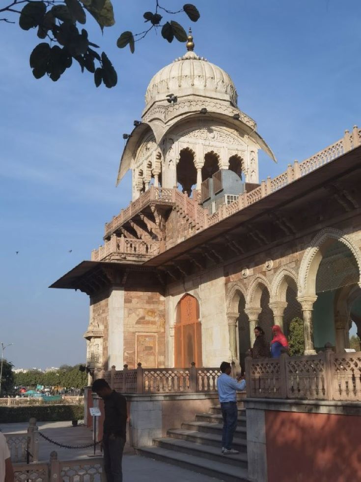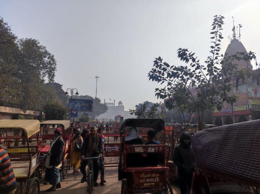 В Дели нам удалось запечатлеть снаружи храм Акшардхам – он вошёл в Книгу рекордов Гиннесса как самый грандиозный индуистский храм. Видны были в дымке только его крыша и гигантская статуя. Ближе сфотографировать не получилось: на территорию храма телефоны проносить нельзя, да и вообще ничего туда проносить нельзя. Также мы посмотрели Хава-Махал – Дворец Ветров и Храм Лотоса (здание красивое, но внутри, увы, полюбоваться нечем). Запечатлели и мечеть Джама-Масджид. Везде, где есть какие-то достопримечательности, чисто.