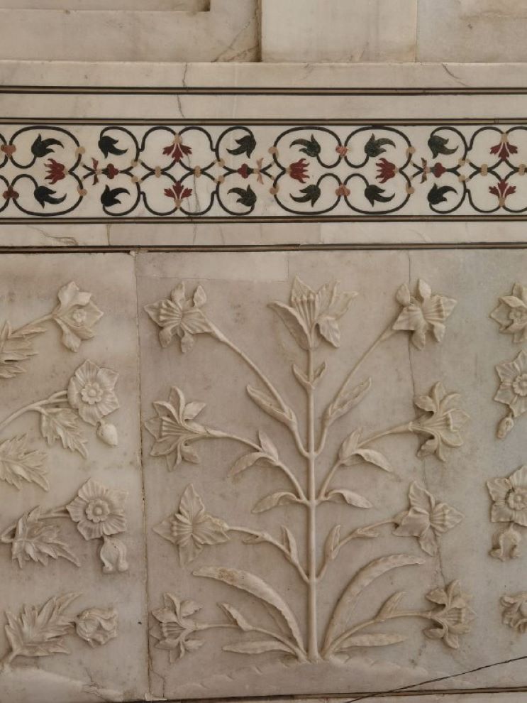 Нас очень сильно впечатлил Тадж-Махал – не зря это одно из чудес света! Очень красивое сооружение. Всё, что кажется там обычным рисунком на мраморе, – это на самом деле инкрустация, дивная красота узоров из драгоценных и полудрагоценных камней. Тадж-Махал стоит на берегу реки, и когда я смотрела телепередачи о нём, там говорили, что по берегам этой реки навалены кучи мусора, кругом живут бездомные, но, когда мы приехали туда, меня удивило, как поблизости чисто, какая чистая в реке вода.