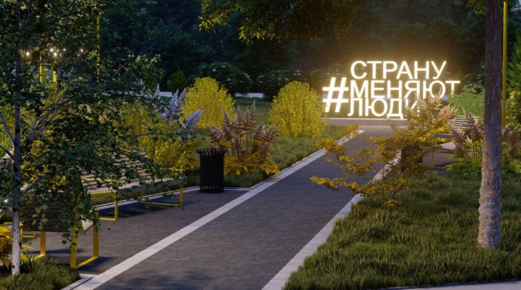 На реализацию проекта предусмотрено финансирование в размере 7,6 миллиона рублей. Здесь установят качели и скамейки в зонах тихого отдыха, смонтируют уличное освещение и декоративные гирлянды. Одним из визуальных акцентов станет световая конструкция #СтрануМеняютЛюди.